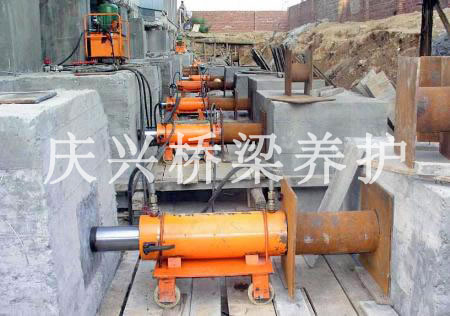 5、安裝好油壓千斤頂,同時計算好每條柱子的承重及需要頂升的高度。整體同步